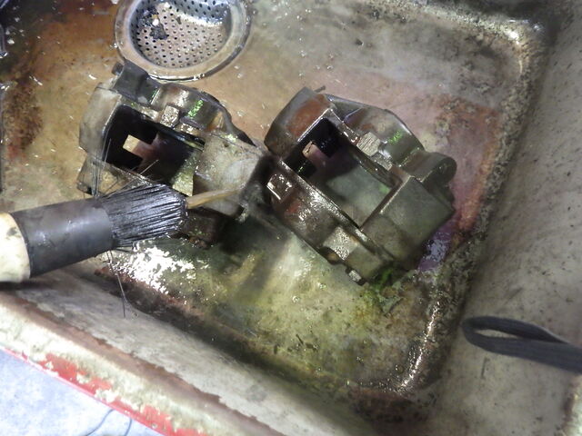 ブレーキキャリパーも洗浄します。