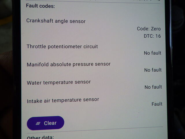 カジモニチェックはクランクセンサーと吸気温センサーにフォルトあります。