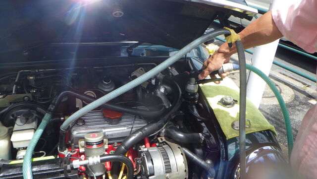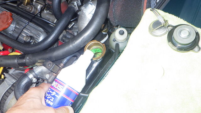 ラジエターフラッシュ入れてエンジン始動で洗浄開始