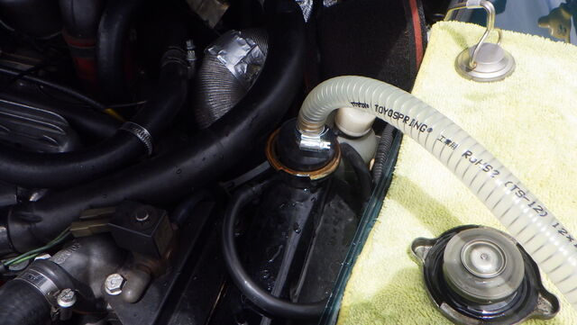 ラジエター口から逆流で吸い出します