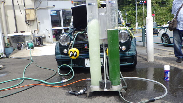 左がヒーターコアからの逆流水。。