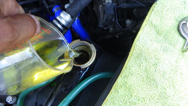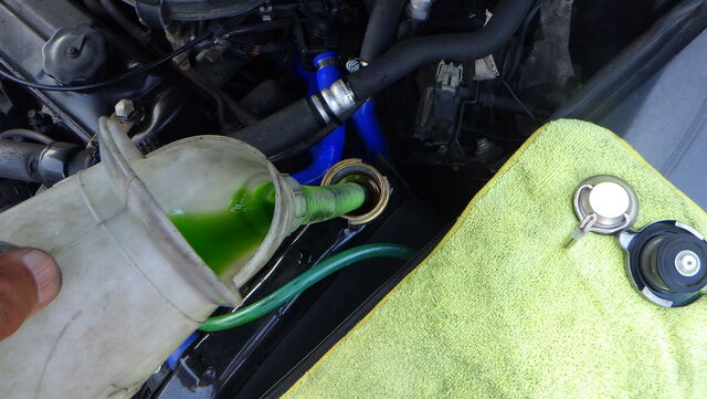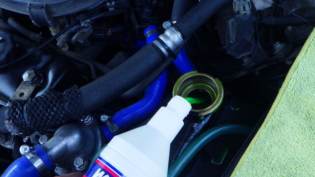 ラジエターフラッシュ入れてエンジン始動で洗浄開始
