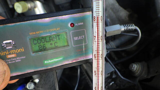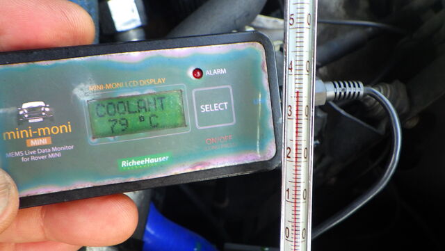 エンジン側の水温センサーはグングン上がって79℃ですが、