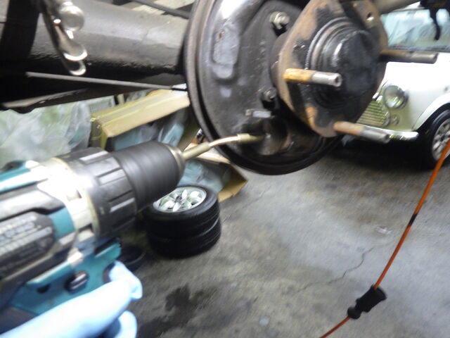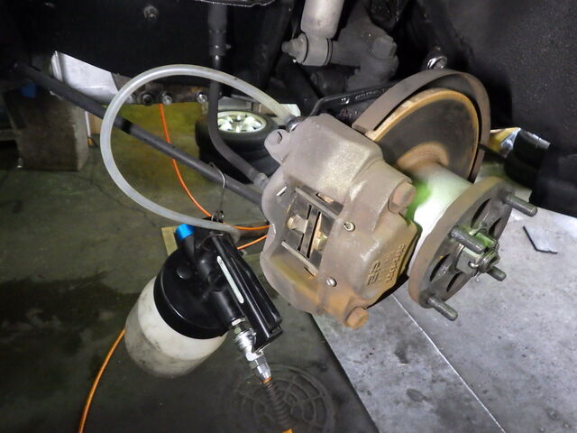 ブレーキパイプラインのエア抜きをします。