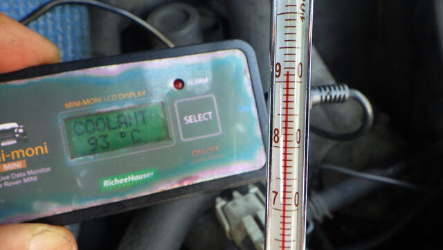 ラジエターに挿した温度計は36℃をキープしてます。