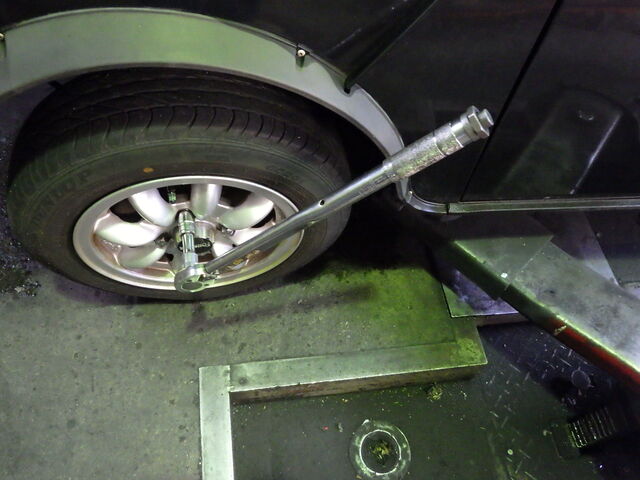 タイヤを取り付け規定トルクで締め付けます。