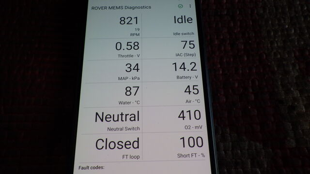エンジンアイドリング回転数 821rpm