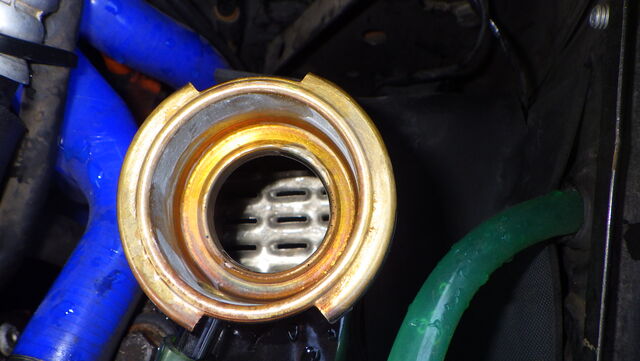 更に水温上昇させるとラジエターに勢いよく流れ込んできてサーモスタットが全開になったのが分かります