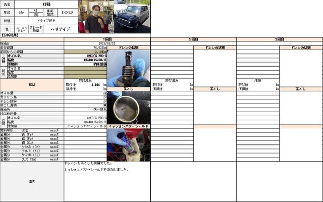 今回初のオイル交換でしたのでオイルカルテを作りました。