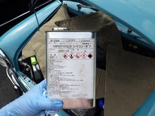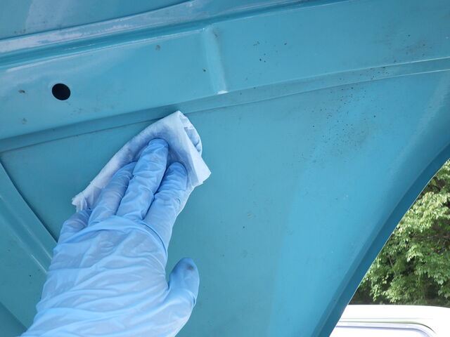 ボンネットインシュレーターを貼る前に貼る箇所をシリコンオフで脱脂