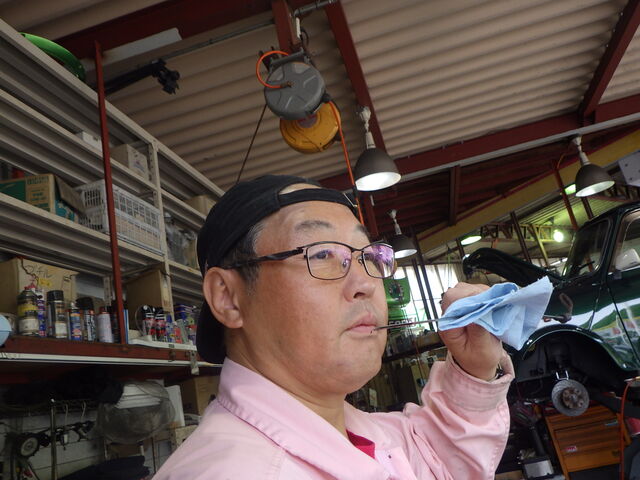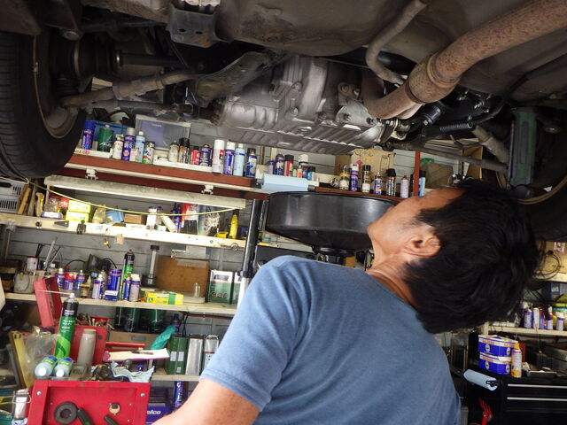「ここのオイル漏れが気になるのよ。」