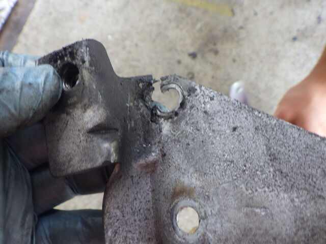 ダウンパイプのブラケットが千切れかけていました。