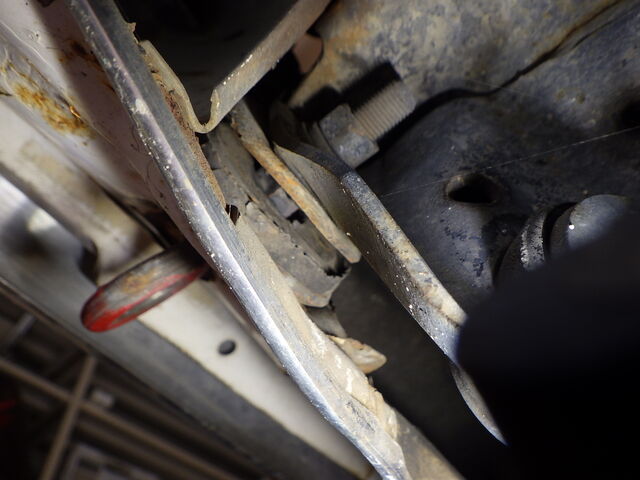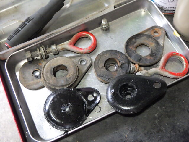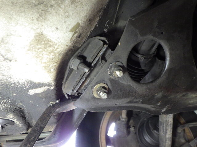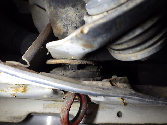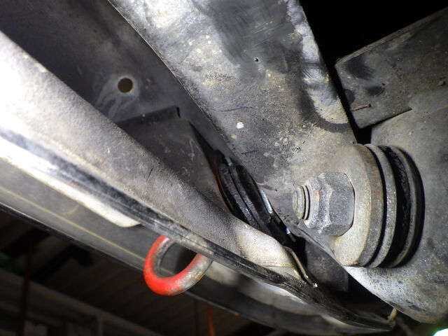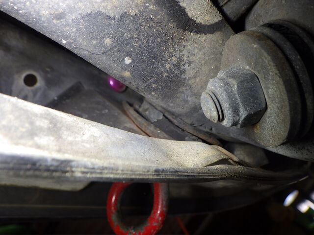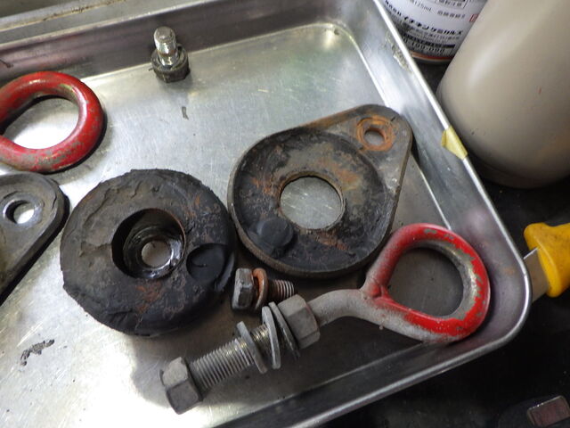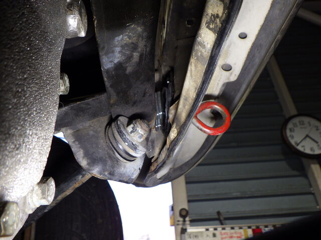 フロントサブフレーム丸マウントが完全に剥離しています。
