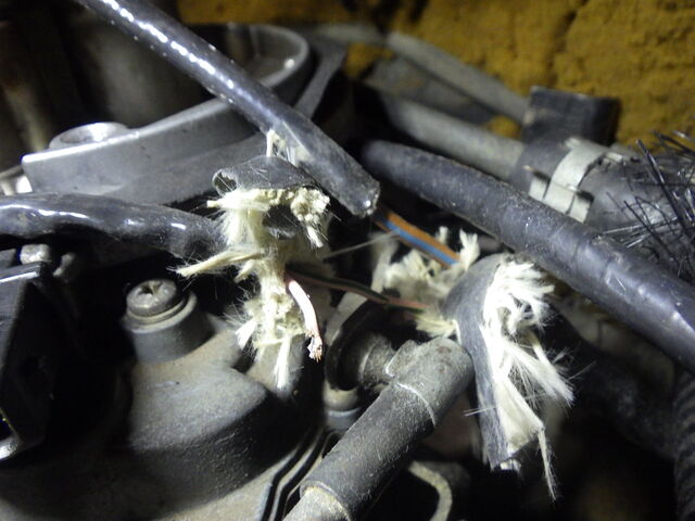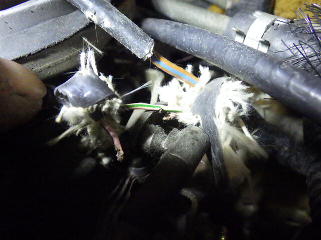 破れたカバーを剥いていくと切れた配線が出てきました。