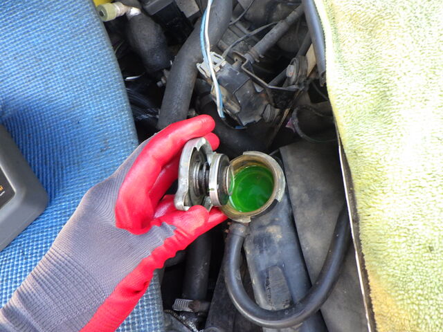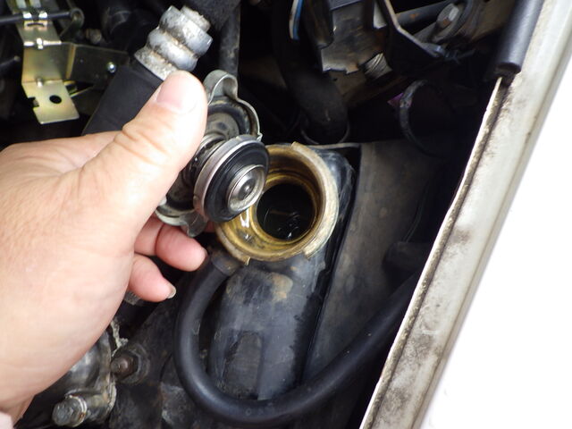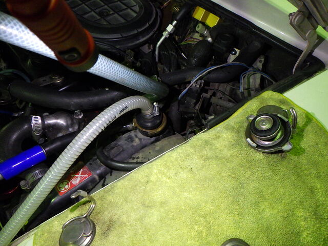 そのままエンジン掛けながらリザーブタンクに冷却水補充。