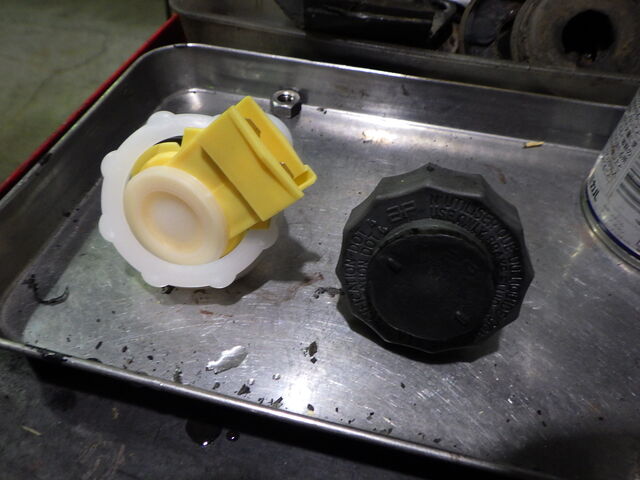 ブレーキマスターのフィラーキャップが破損しています。