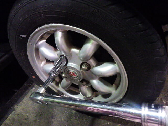 タイヤを取り付け規定トルクで締め付けます。