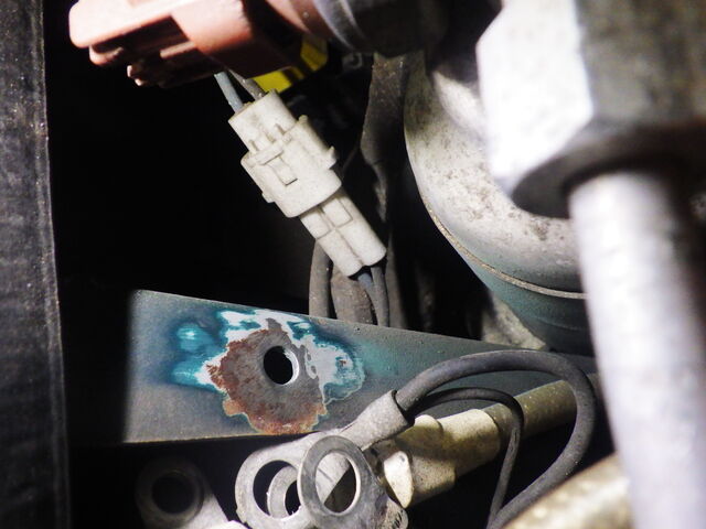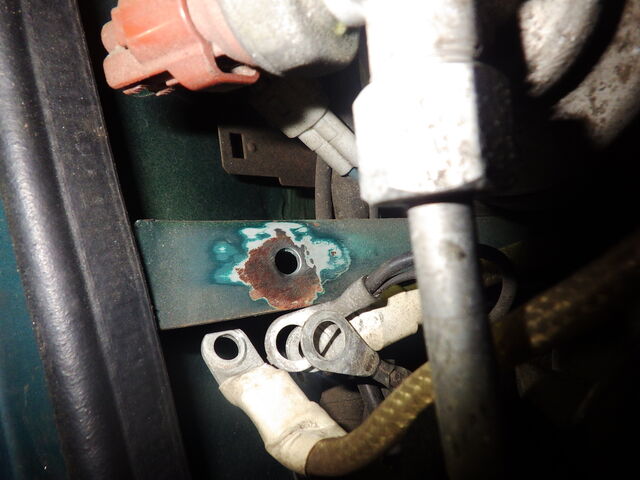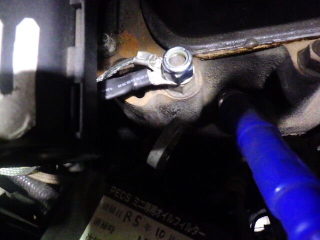 ECUのアースポイントに平織のアース線を共締めするので錆を磨いて