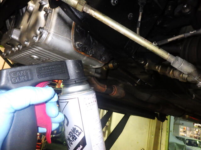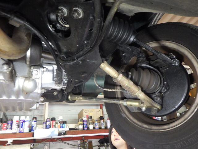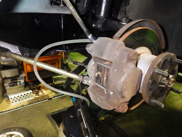 ブレーキパイプラインのエア抜きををします。