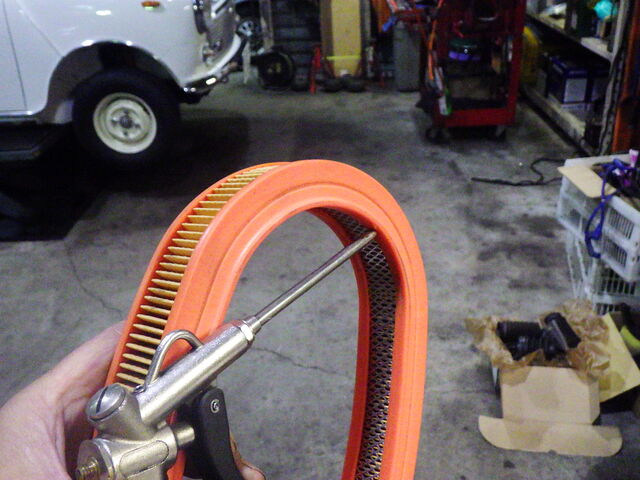 エアクリーナーエレメントは奇麗なのでエアブロウで清掃して取り付けます。