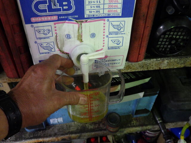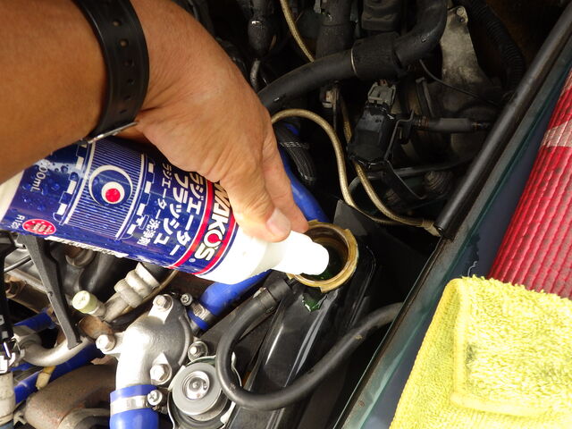 ラジエーター洗浄剤を入れます。