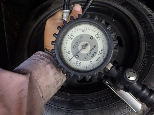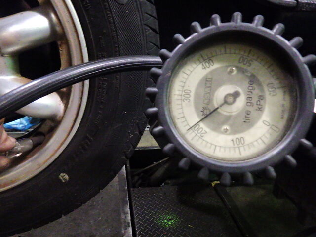 タイヤの空気圧は220kpaに調整しました。