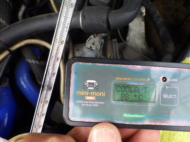 ミニモニ(ECU)の水温 88℃ ラジエータアッパータンク 87℃