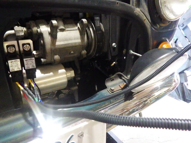 ヘッドライトリレーを取り付け配線を左右に振り分けてコルゲートチューブで
