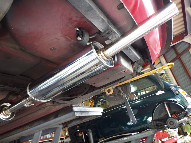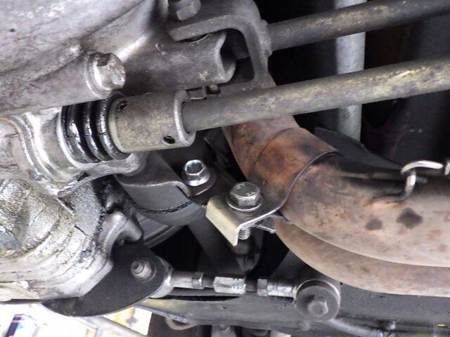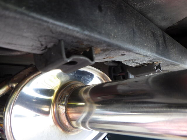 ダウンパイプのブラケットボルト固定とピットに入る時にマフラーフランジが擦るのでクサビも入れました(`・ω・´)ゞ