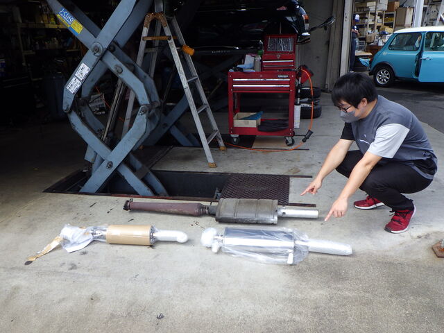「これが噂のr.3(アールドットスリー)オリジナルセンター出しエグゾースト キット サイレントVer. INJ用(ステンレス) 保安基準適合品かぁ~」