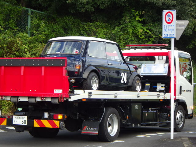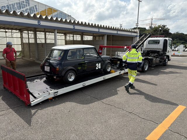 NSNさんはレース保険に入ってるのでサーキットの駐車場でもパドックにでも保険レッカーに来てもらうことができます。