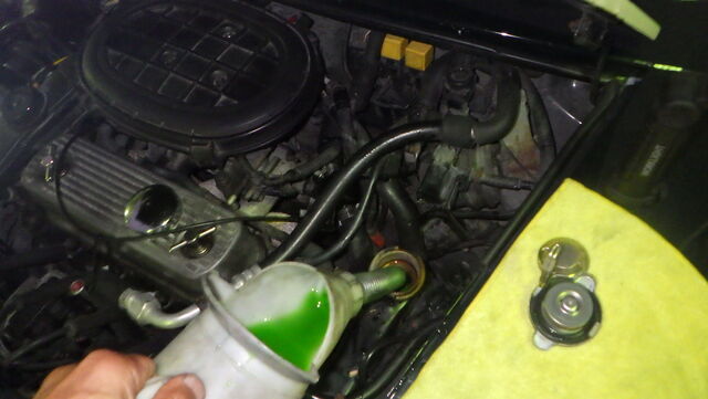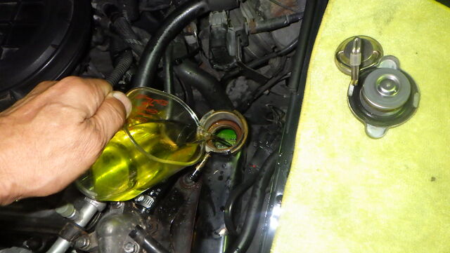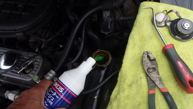 ラジエターフラッシュ入れてエンジン始動で洗浄開始