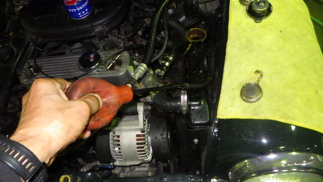 交換したヒーターコアはきれいなはずですがホースもあるので念のためにヒーターコアからも逆流で吸い出します