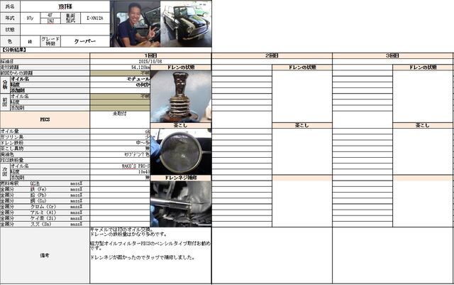 今回は初のオイル交換でしたのでオイルカルテを作りました。