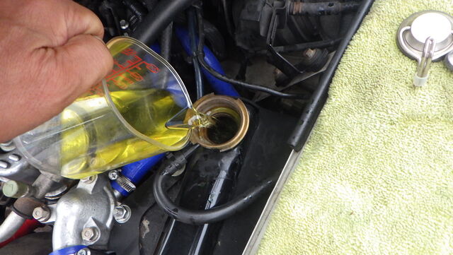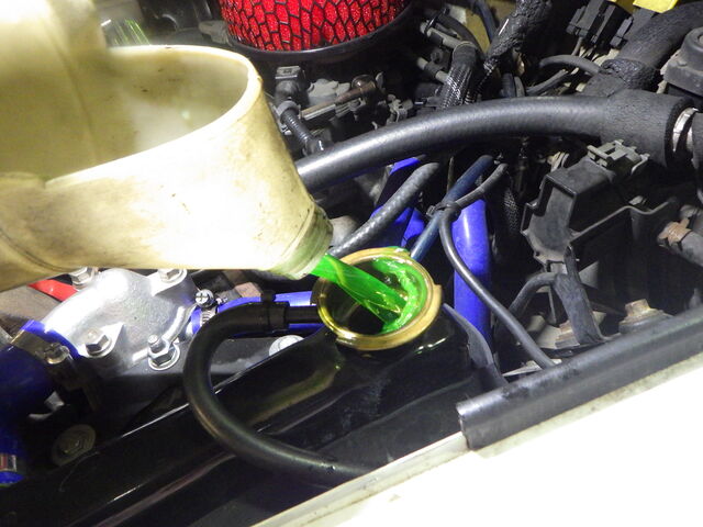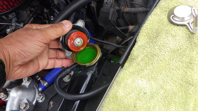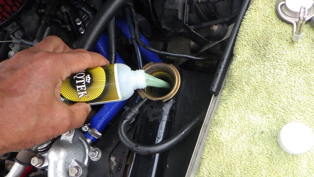 ラジエターフラッシュ入れてエンジン始動で洗浄開始
