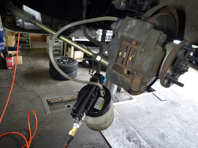 ブレーキパイプラインのエア抜きをします。