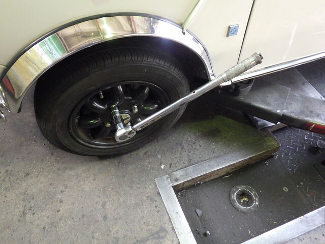 タイヤを取り付け規定トルクで締め付けます。