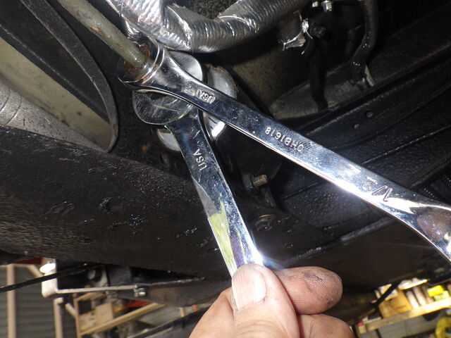 ブレーキパイプラインのエア抜きをします。