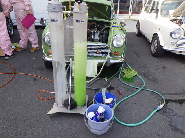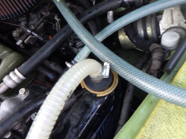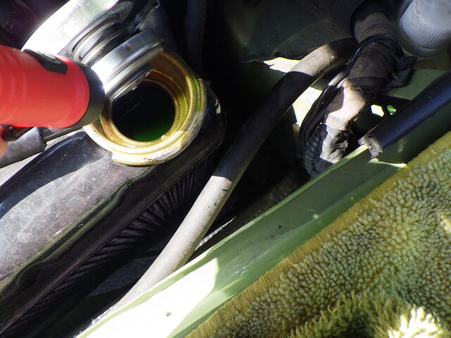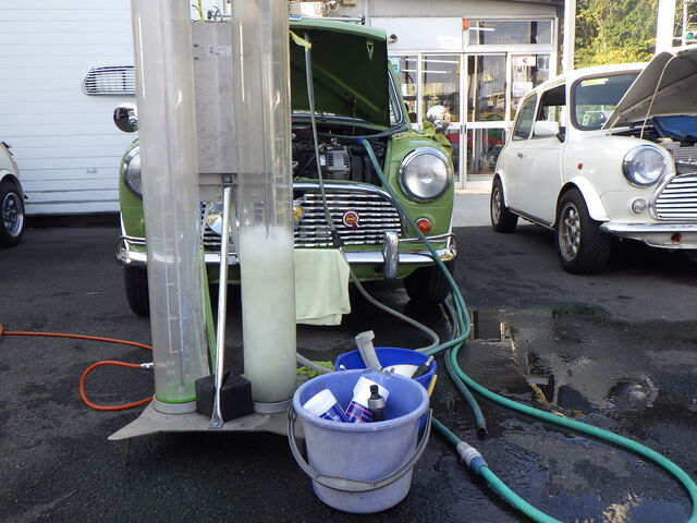 ラジエーターから逆流させて吸い出します。