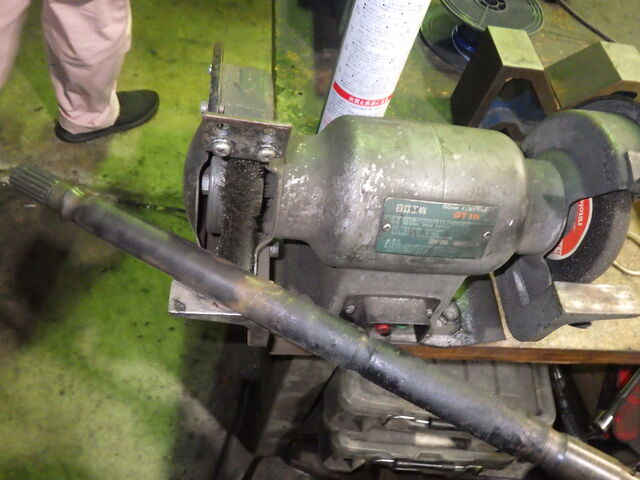 シャフトとCVジョイントのケースも錆びているので錆を落して塗装します。