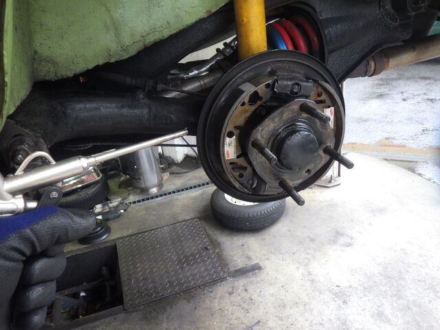 リフトアップしてタイヤを外しました。