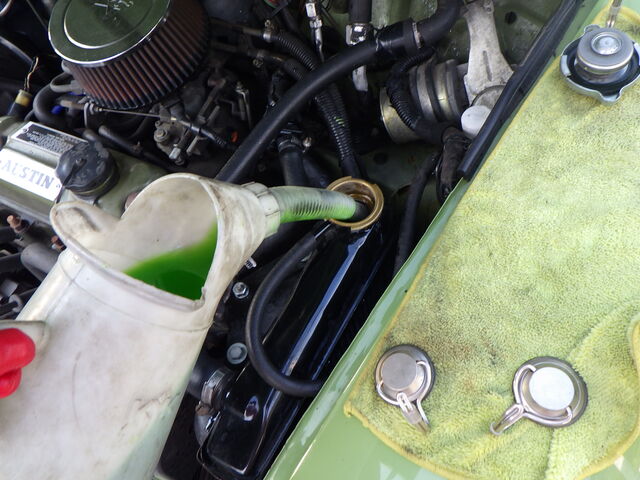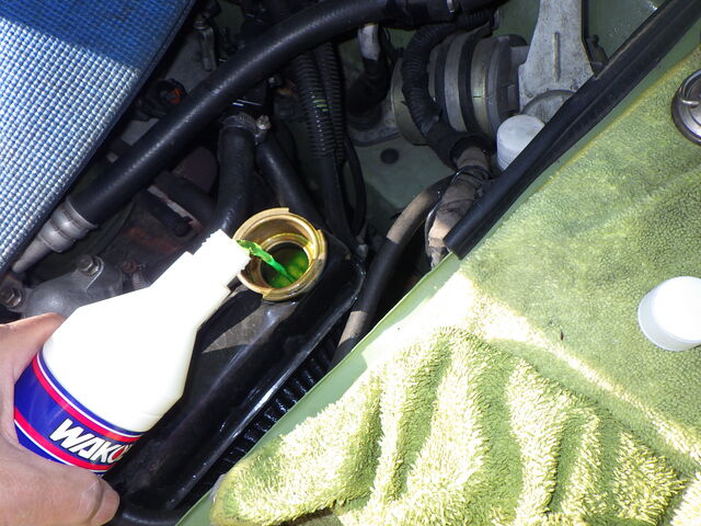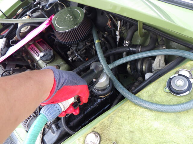 ラジエターフラッシュ入れてエンジン始動で洗浄開始