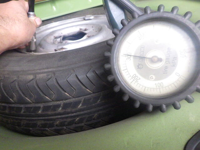 スペアタイヤの空気圧は300kpaに調整しました。