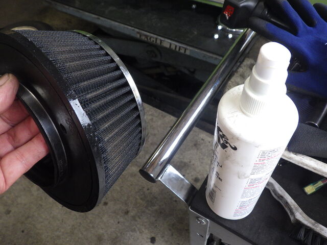K&Nのメンテナンスキットの洗剤をたっぷりスプレーします。