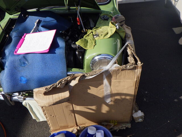 ボンネットをパカッと開けると何とも不思議な光景。