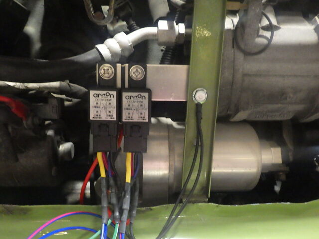 ヘッドライトリレーを取り付けます。