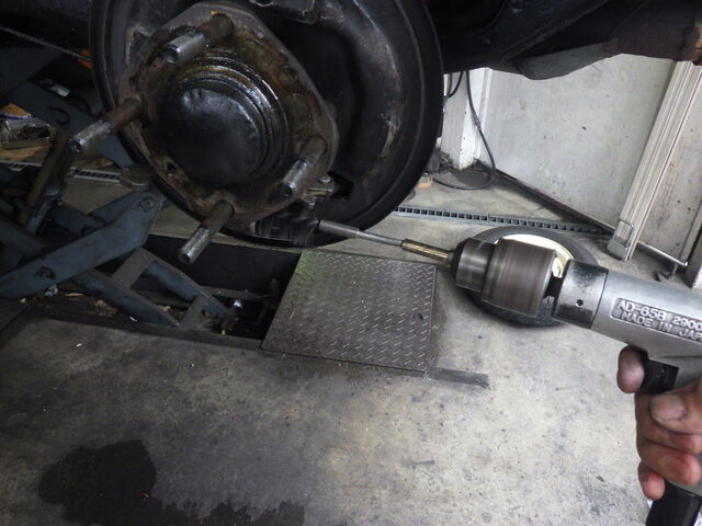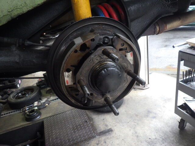 右側のドライブシャフトを取付けてハブやブレーキを復元します。