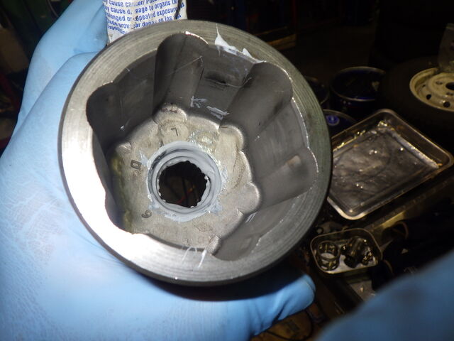 ホールプラグが嵌合する面に液状ガスケットを塗布します。