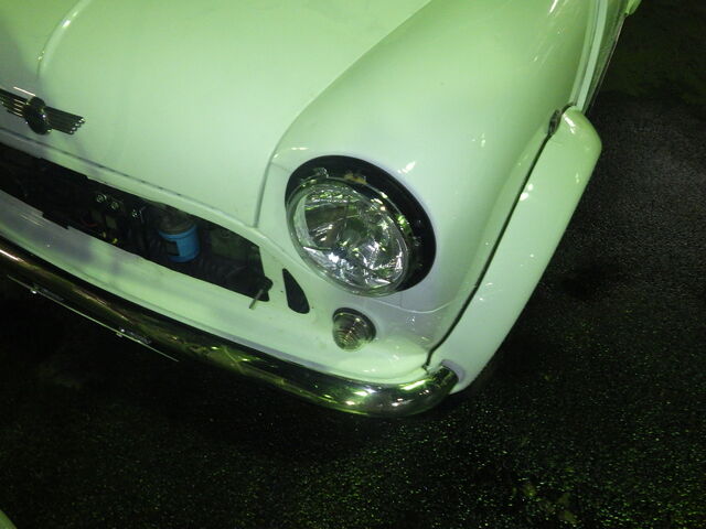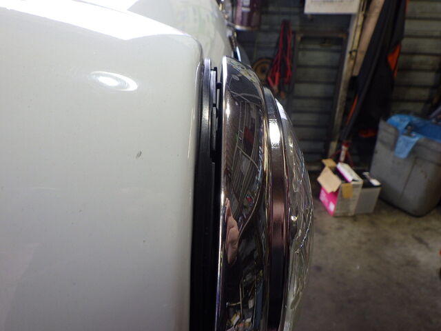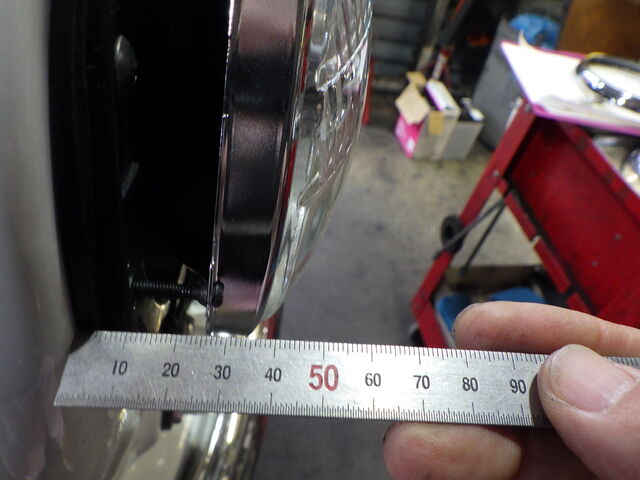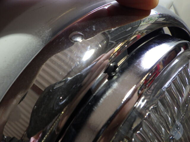 本来の位置にリムをあてがってみるとヘッドライトがかなり前に出ているのが分かります。