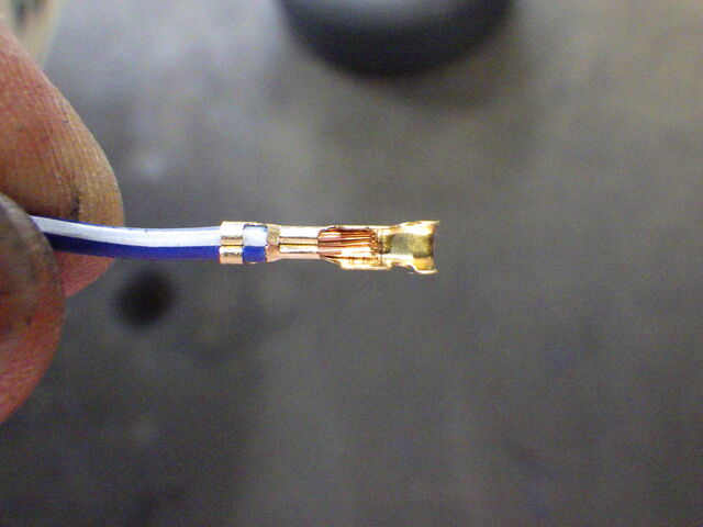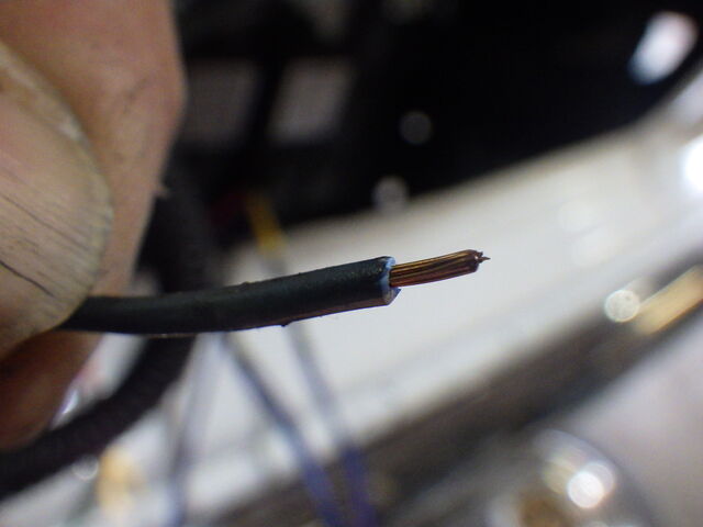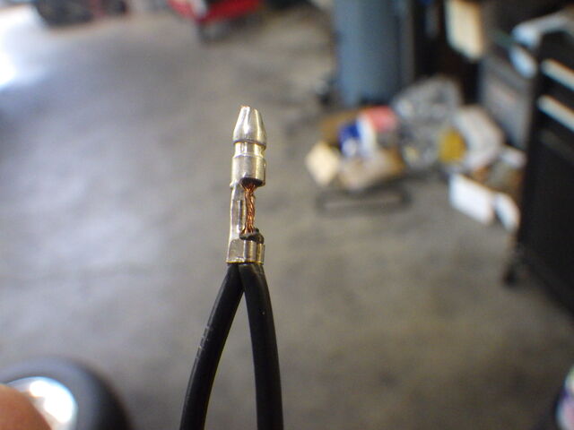 そうするともう片側の心線を圧着するところまで心線が伸びます。